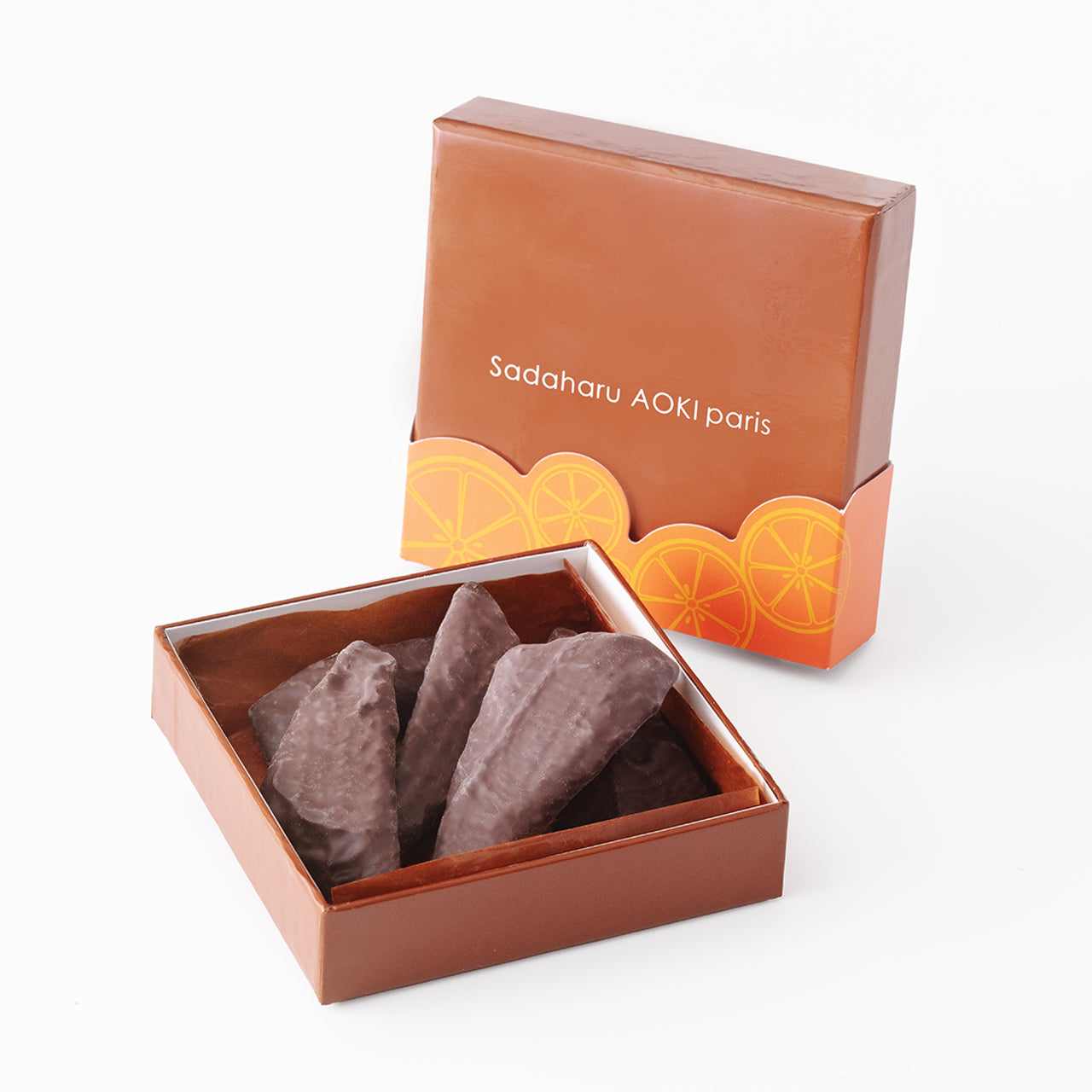 太陽をたっぷりと浴びて育ったイタリア産オレンジを大きくカットし、ショコラ ノワールで包みました。ジューシーな美味しさは洋酒に合わせるのもオススメ!